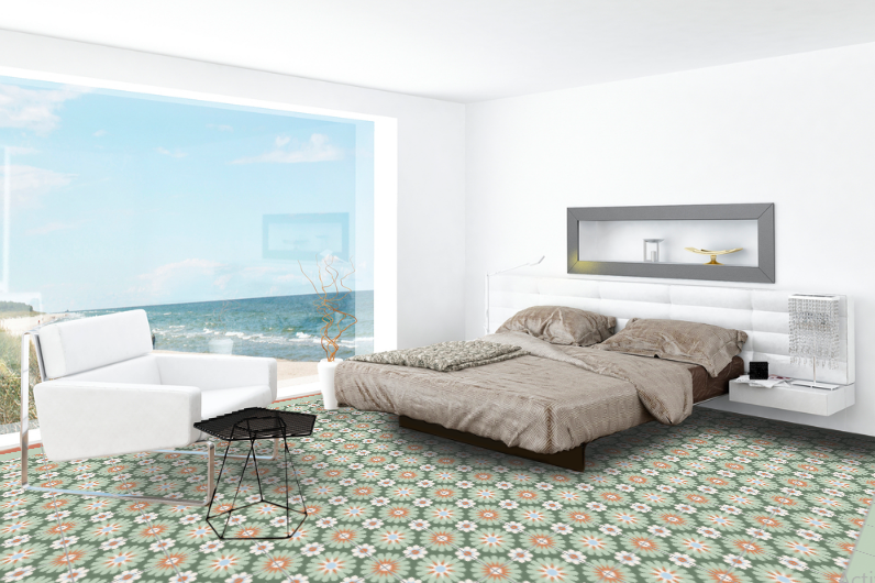 ZC214La composición de la baldosa hidráulica, es a base de cemento gris, cemento blanco, marmolina (polvo de mármol fino), arena y pigmentos. Se introducen los diferentes elementos en un molde dentro de una prensa hidráulica y al ser prensados se confecciona una baldosa, que luego será humedecida y finalmente se endurecerá y secará al aire. Las baldosas hidráulicas son elaboradas una a una por un artesano, como siempre, con una prensa hidráulica. La elaboración artesanal de estas baldosas hace que sean piezas únicas, pudiendo haber una leve diferencia en los tonos y colores de las mismas. Las losas hidráulicas son utilizadas principalmente para suelos, aunque también se colocan en paredes, decorando todo tipo de estancias, además son colocadas en piscinas, bancos, fuentes, etc… Ofrecemos una gran cantidad de diseños en mosaico hidráulico, posibilitando que el cliente diseñe su propio suelo con nuestro simulador o que elija uno de los modelos que tenemos en stock. Además mostraremos al cliente la forma de colocarlo y su correcto mantenimiento. Asesoramos a nuestros clientes por tanto, en la fase inicial de elección de la baldosa, en su colocación y en su mantenimiento y luego lo acompañamos en la resolución de cualquier incidencia.