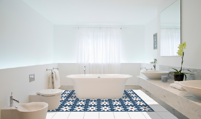 The composition of the hydraulic tile is based on grey cement, white cement, marmolina (fine marble dust), sand and pigments. The different elements are put into a mould inside a hydraulic press and when they are pressed, a tile is made, which is then moistened and finally hardened and dried in the air. The hydraulic tiles are made one by one by a craftsman, as always, with a hydraulic press. The craftsmanship of these tiles makes them unique pieces, and there may be a slight difference in the tones and colours of the tiles. The hydraulic tiles are mainly used for floors, although they are also placed on walls, decorating all kinds of rooms, as well as in swimming pools, benches, fountains, etc… We offer a large number of designs in hydraulic mosaic, allowing the customer to design their own floor with our simulator or choose one of the models we have in stock. We will also show the customer how to lay it and how to maintain it correctly. We advise our clients, therefore, in the initial phase of choosing the tile, in its installation and maintenance and then we accompany them in the resolution of any incident.