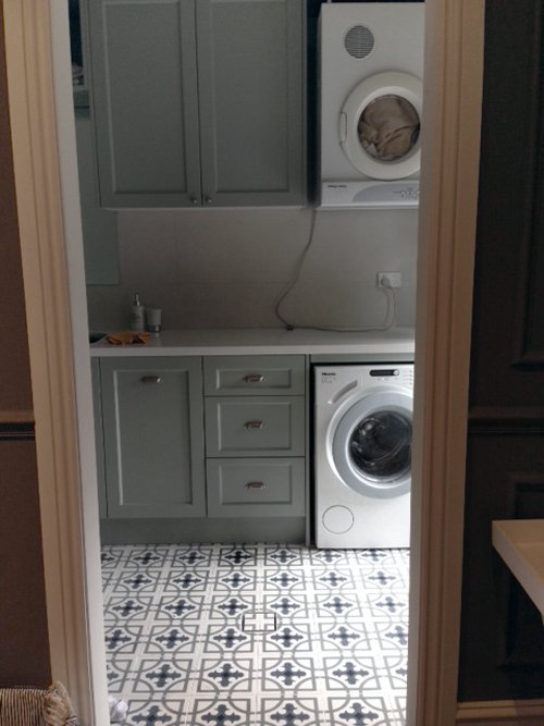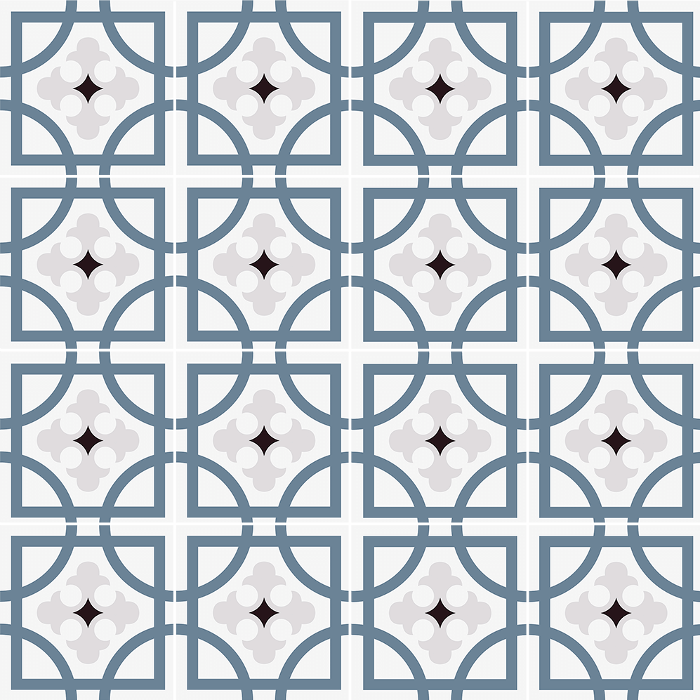The composition of the hydraulic tile is based on grey cement, white cement, marmolina (fine marble dust), sand and pigments. The different elements are put into a mould inside a hydraulic press and when they are pressed, a tile is made, which is then moistened and finally hardened and dried in the air. The hydraulic tiles are made one by one by a craftsman, as always, with a hydraulic press. The craftsmanship of these tiles makes them unique pieces, and there may be a slight difference in the tones and colours of the tiles. The hydraulic tiles are mainly used for floors, although they are also placed on walls, decorating all kinds of rooms, as well as in swimming pools, benches, fountains, etc… We offer a large number of designs in hydraulic mosaic, allowing the customer to design their own floor with our simulator or choose one of the models we have in stock. We will also show the customer how to lay it and how to maintain it correctly. We advise our clients, therefore, in the initial phase of choosing the tile, in its installation and maintenance and then we accompany them in the resolution of any incident.