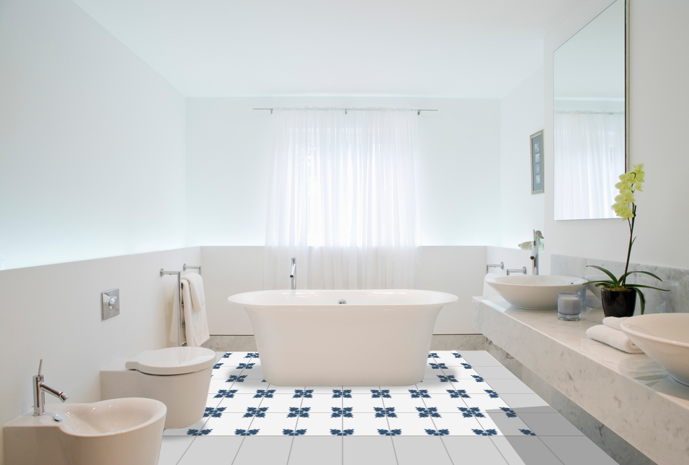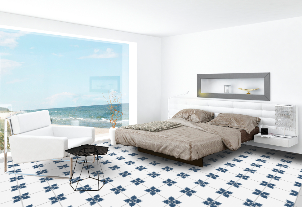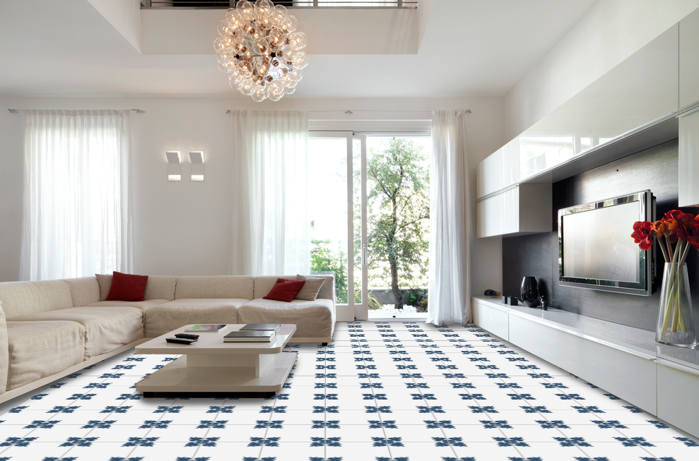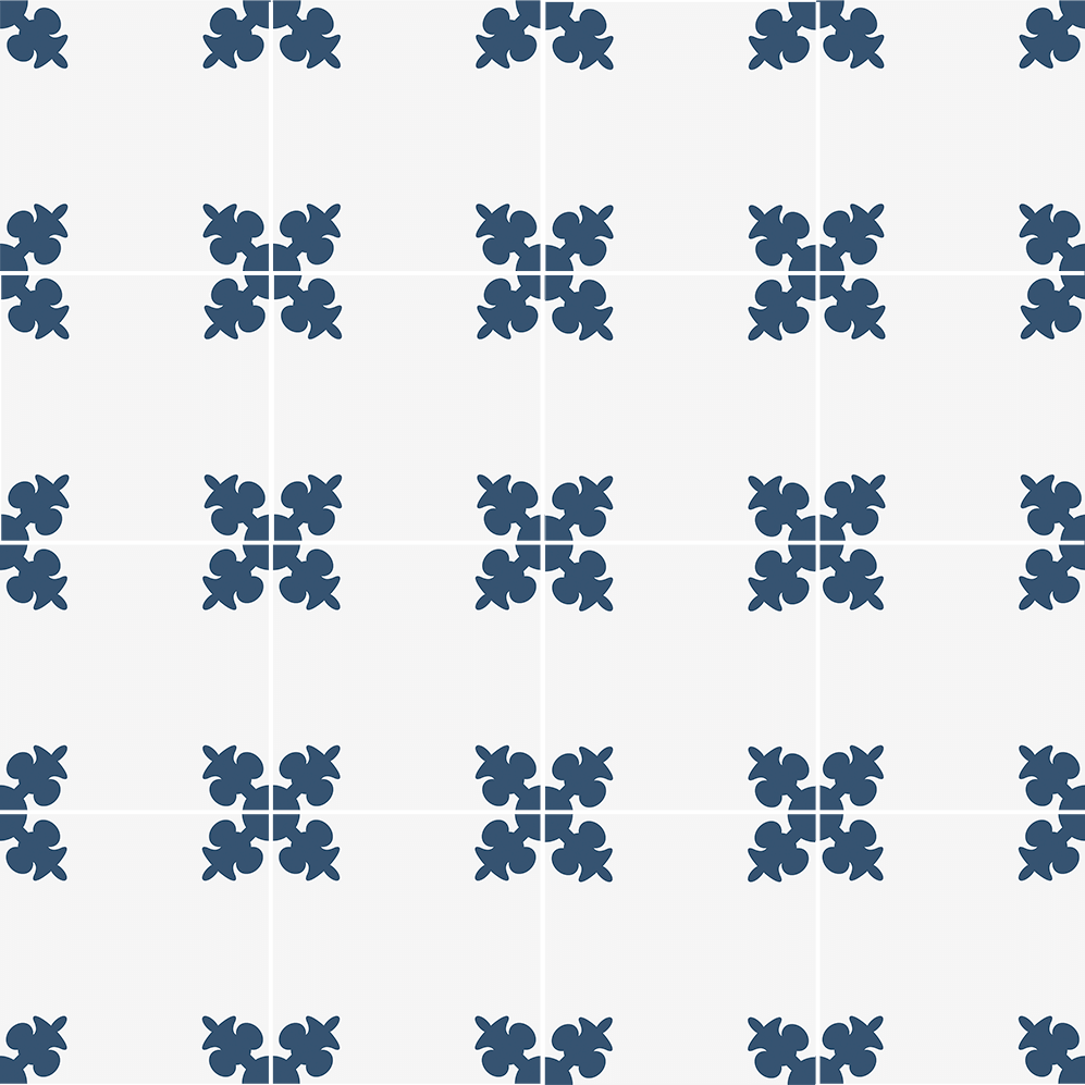 The composition of the hydraulic tile is based on grey cement, white cement, marmolina (fine marble dust), sand and pigments. The different elements are put into a mould inside a hydraulic press and when they are pressed, a tile is made, which is then moistened and finally hardened and dried in the air. The hydraulic tiles are made one by one by a craftsman, as always, with a hydraulic press. The craftsmanship of these tiles makes them unique pieces, and there may be a slight difference in the tones and colours of the tiles. The hydraulic tiles are mainly used for floors, although they are also placed on walls, decorating all kinds of rooms, as well as in swimming pools, benches, fountains, etc… We offer a large number of designs in hydraulic mosaic, allowing the customer to design their own floor with our simulator or choose one of the models we have in stock. We will also show the customer how to lay it and how to maintain it correctly. We advise our clients, therefore, in the initial phase of choosing the tile, in its installation and maintenance and then we accompany them in the resolution of any incident.