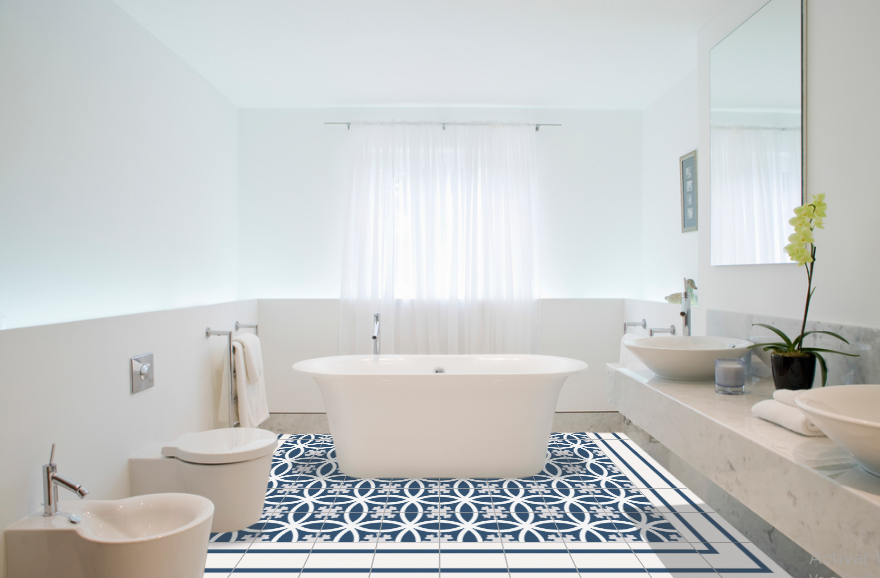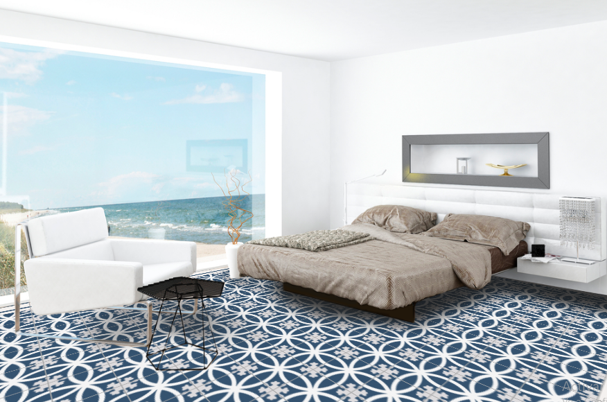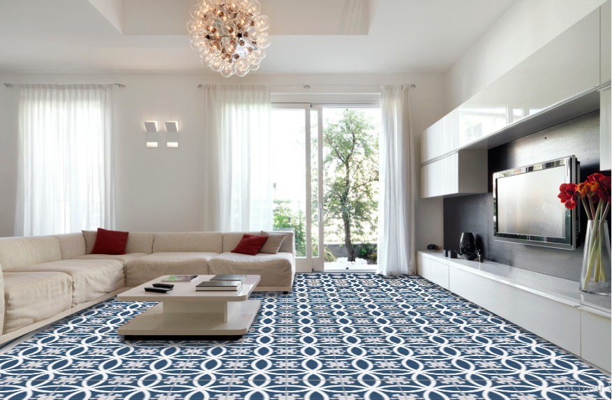 The composition of the hydraulic tile is based on grey cement, white cement, marmolina (fine marble dust), sand and pigments. The different elements are put into a mould inside a hydraulic press and when they are pressed, a tile is made, which is then moistened and finally hardened and dried in the air. The hydraulic tiles are made one by one by a craftsman, as always, with a hydraulic press. The craftsmanship of these tiles makes them unique pieces, and there may be a slight difference in the tones and colours of the tiles. The hydraulic tiles are mainly used for floors, although they are also placed on walls, decorating all kinds of rooms, as well as in swimming pools, benches, fountains, etc… We offer a large number of designs in hydraulic mosaic, allowing the customer to design their own floor with our simulator or choose one of the models we have in stock. We will also show the customer how to lay it and how to maintain it correctly. We advise our clients, therefore, in the initial phase of choosing the tile, in its installation and maintenance and then we accompany them in the resolution of any incident.