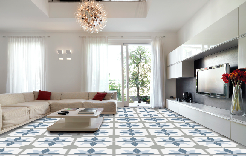 The composition of the hydraulic tile is based on grey cement, white cement, marmolina (fine marble dust), sand and pigments. The different elements are put into a mould inside a hydraulic press and when they are pressed, a tile is made, which is then moistened and finally hardened and dried in the air. The hydraulic tiles are made one by one by a craftsman, as always, with a hydraulic press. The craftsmanship of these tiles makes them unique pieces, and there may be a slight difference in the tones and colours of the tiles. The hydraulic tiles are mainly used for floors, although they are also placed on walls, decorating all kinds of rooms, as well as in swimming pools, benches, fountains, etc… We offer a large number of designs in hydraulic mosaic, allowing the customer to design their own floor with our simulator or choose one of the models we have in stock. We will also show the customer how to lay it and how to maintain it correctly. We advise our clients, therefore, in the initial phase of choosing the tile, in its installation and maintenance and then we accompany them in the resolution of any incident.
