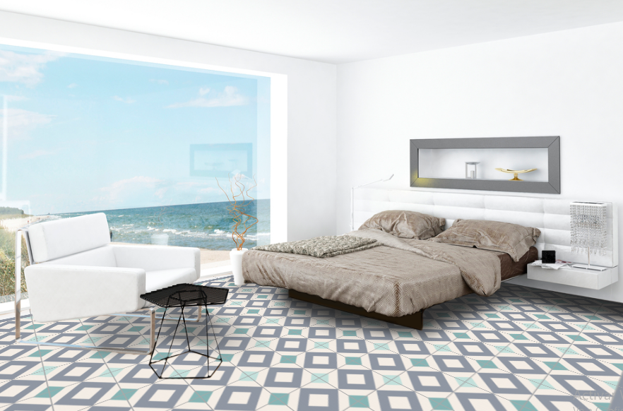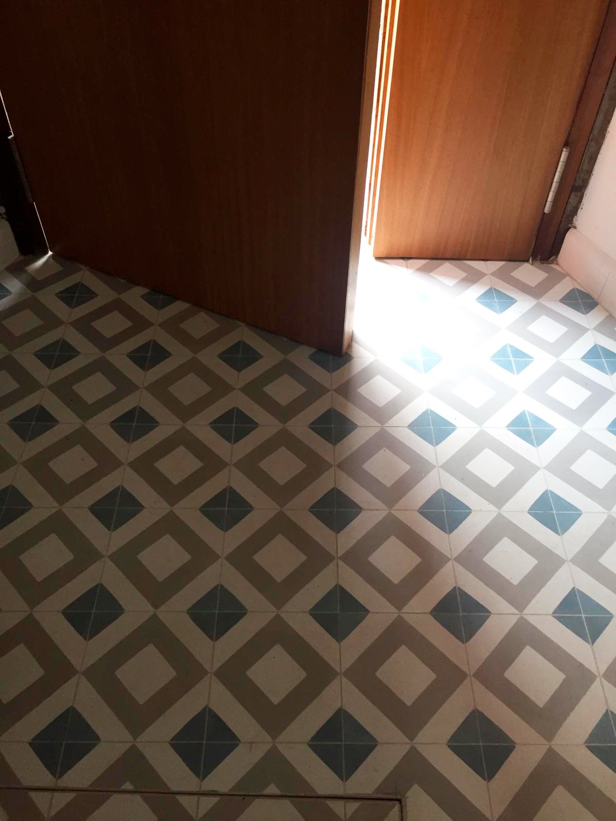 The composition of the hydraulic tile is based on grey cement, white cement, marmolina (fine marble dust), sand and pigments. The different elements are put into a mould inside a hydraulic press and when they are pressed, a tile is made, which is then moistened and finally hardened and dried in the air. The hydraulic tiles are made one by one by a craftsman, as always, with a hydraulic press. The craftsmanship of these tiles makes them unique pieces, and there may be a slight difference in the tones and colours of the tiles. The hydraulic tiles are mainly used for floors, although they are also placed on walls, decorating all kinds of rooms, as well as in swimming pools, benches, fountains, etc… We offer a large number of designs in hydraulic mosaic, allowing the customer to design their own floor with our simulator or choose one of the models we have in stock. We will also show the customer how to lay it and how to maintain it correctly. We advise our clients, therefore, in the initial phase of choosing the tile, in its installation and maintenance and then we accompany them in the resolution of any incident.